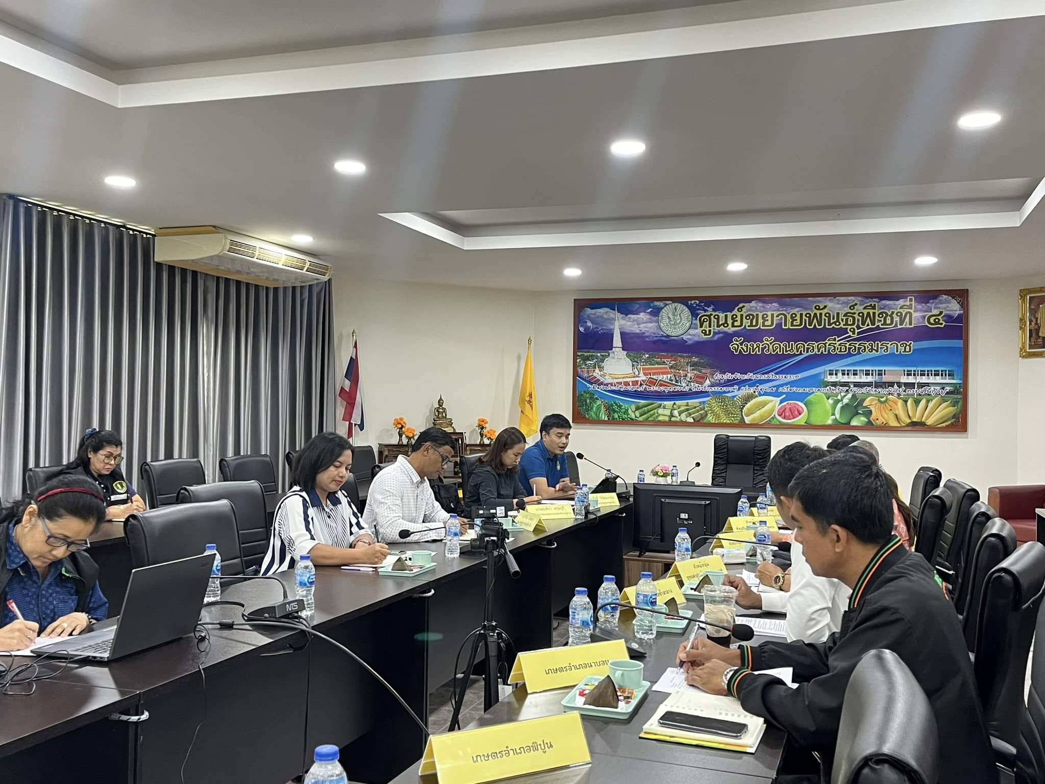นายวินัย อินทอง ผู้อำนวยการศูนย์ขยายพันธุ์พืชที่ 4 จังหวัดนครศรีธรรมราช พร้อมด้วยคณะ ให้การต้อนรับนายธนศักดิ์ วิวัฒนวานิช ผู้อำนวยการกลุ่มโครงการพระราชดำริ กรมส่งเสริมการเกษตร เป็นประธานชี้แจงรายละเอียดการจัดโครงการคลินิกเกษตรเคลื่อนที่ในพระราชานุเคราะห์ สมเด็จพระบรมโอรสาธิราช ฯ สยามมกุฎราชกุมาร เฉลิมพระเกียรติเนื่องในโอกาสวันเฉลิมพระชนมพรรษาพระบาทสมเด็จพระเจ้าอยู่หัว 28 กรกฎาคม 2568 ระดับประเทศ ณ ศูนย์ขยายพันธุ์พืชที่ 4 จังหวัดนครศรีธรรมราช