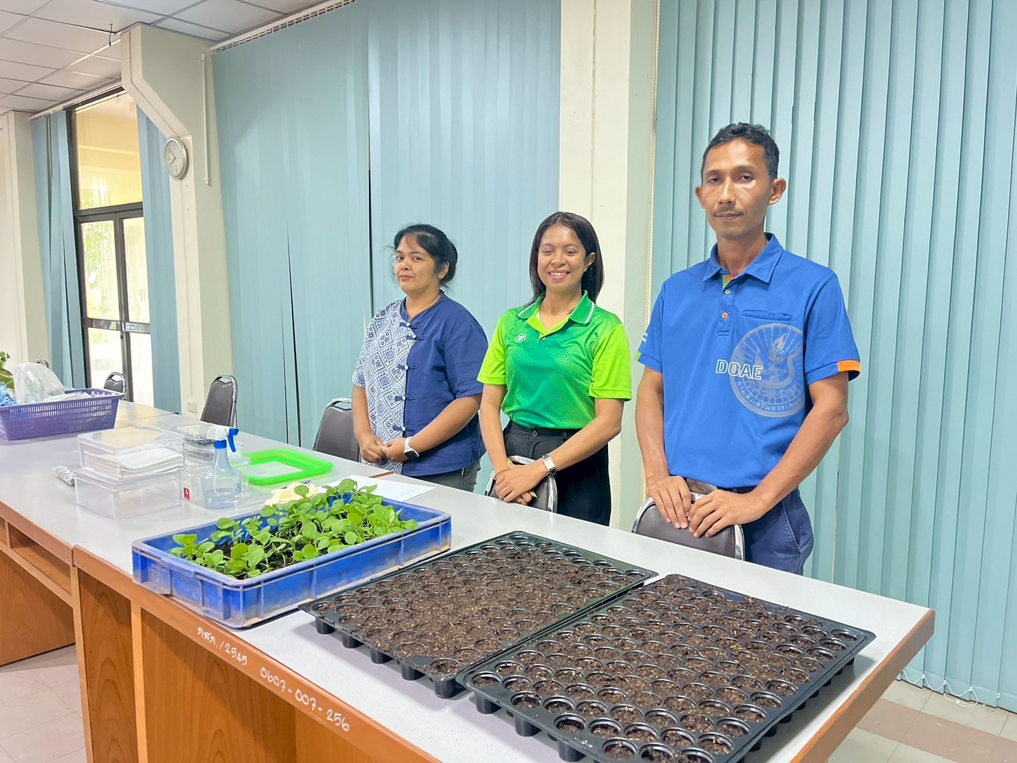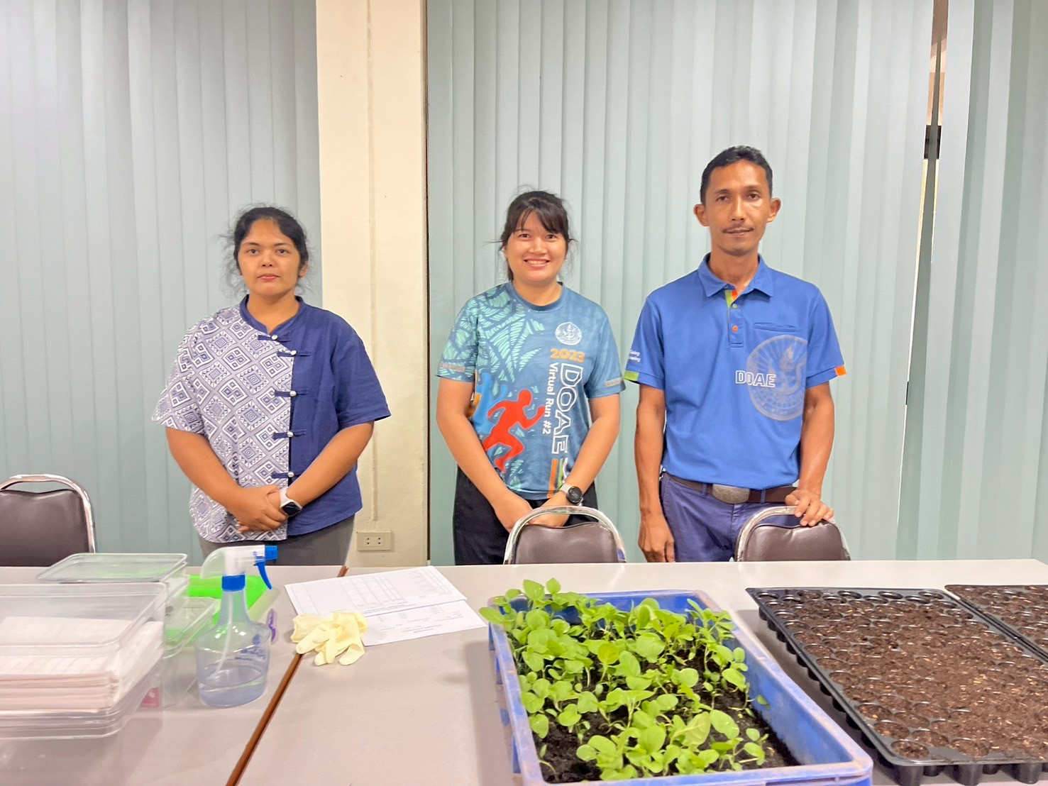 นายวินัย อินทอง ผู้อำนวยการศูนย์ขยายพันธุ์พืชที่ 4 จังหวัดนครศรีธรรมราชพร้อมด้วยคณะ ต้อนรับคณะเจ้าหน้าที่สถานีตํารวจภูธรทุ่งสง จังหวัดนครศรีธรรมราช เจ้าหน้าที่สาธารณสุขอำเภอทุ่งสง และเจ้าหน้าที่มหาดไทย พร้อมบรรยายถ่ายทอดความรู้ด้านการขยายพันธุ์พืช ได้แก่ การย้ายต้นกล้าพืชผัก การตอนกิ่งมะนาว เยี่ยมเยือนจุดบริการพืชพันธุ์ Doae เรียนรู้ทำความรู้จัดต้นพืชผักพืชอาหาร ให้กับบุคคลในโครงการ ตําบลยั่งยืน เพื่อแก้ไขปัญหายาเสพติดแบบครบวงจรตามยุทธศาสตร์ชาติ ประจําปี งบประมาณ 2568 เป้าหมายที่เข้าดําเนินการคือ ม.1 และ ม.5 ต.นาโพธิ์ อ.ทุ่งสง จ.นครศรีธรรมราช โดยกําหนด กิจกรรม การตรวจ ติดตามและให้คําแนะนําการดําเนิน โครงการและกิจกรรมการส่งเสริมอาชีพ