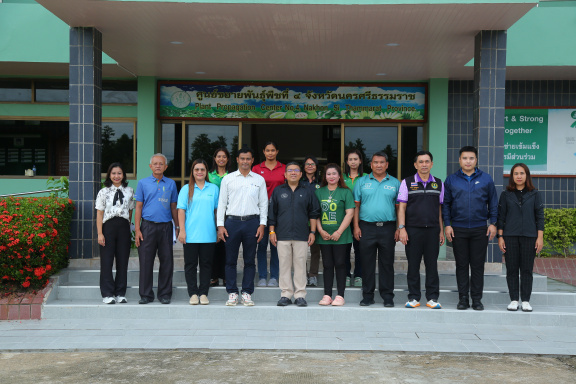 นายวินัย อินทอง ผู้อำนวยการศูนย์ขยายพันธุ์พืชที่ 4 จังหวัดนครศรีธรรมราชพร้อมด้วยคณะ ต้อนรับ นายครองศักดิ์ สงรักษา รองอธิบดีกรมส่งเสริมการเกษตร นายภูวเดช วุฒิวงศ์วัฒ ผู้อำนวยการสำนักงานส่งเสริมและพัฒนาการเกษตรที่ 5 จังหวัดสงขลา นายปัญญา ประดิษฐสาร เกษตรจังหวัดนครศรีธรรมราช และนายธนศักดิ์ วิวัฒนวานิช ผู้อำนวยการกลุ่มโครงการพระราชดำริ กองส่งเสริมโครงการพระราชดำริ การจัดการพื้นที่และวิศวกรรมเกษตร กรมส่งเสริมการเกษตร ลงพื้นที่ติดตามความก้าวหน้าการเตรียมความพร้อม การจัดงานโครงการคลินิกเกษตรเคลื่อนที่ในพระราชานุเคราะห์สมเด็จพระบรมโอรสาธิราชฯ สยามมกุฎราชกุมาร เฉลิมพระเกียรติ เนื่องในโอกาสวันเฉลิมพระชนมพรรษาพระบาทสมเด็จพระเจ้าอยู่หัว 28 กรกฎาคม 2568 ระดับประเทศ ณ ศูนย์ขยายพันธุ์พืชที่ 4 จังหวัดนครศรีธรรมราช ตำบลนาบอน อำเภอนาบอน จังหวัดนครศรีธรรมราช