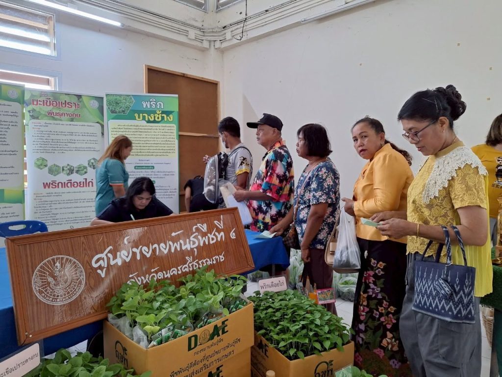 นายวินัย อินทอง ผู้อำนวยการศูนย์ขยายพันธุ์พืชที่ 4 จังหวัดนครศรีธรรมราช มอบหมายนางสาวณัฐสิมา แก้วคุ้มภัย นักวิชาการส่งเสริมการเกษตรปฏิบัติการพร้อมด้วยคณะ ออกบริการเกษตรกรในกิจกรรมโครงการคลินิกเกษตรเคลื่อนที่ในพระราชานุเคราะห์ สมเด็จพระบรมโอรสาธิราช ฯ สยามมกุฎราชกุมารไตรมาส 3/2568 ณ ศูนย์พักพิงร่วมใจอุ่นไอรัก ตำบลขนอม อำเภอขนอม จังหวัดนครศรีธรรมราช ศูนย์ขยายพันธุ์พืชที่ 4 จังหวัดนครศรีธรรมราช ร่วมนิทรรศการ ถ่ายทอดองค์ความรู้เรื่องการขยายพันธุ์พืช และสนับสนุนต้นพันธุ์มะเขือเปราะ จำนวน 500 ต้น ต้นพันธุ์พริกเดือยไก่ จำนวน 500 ต้น และเมล็ดพันธุ์ผักพื้นบ้าน จำนวน 500 ซอง เพื่อมอบให้เกษตรกรที่มีความสนใจ พร้อมทั้งจัดนิทรรศการเพื่อประชาสัมพันธ์โครงการผลิตและขยายพืชพันธุ์ดี ศูนย์ขยายพันธุ์พืชที่ 4 จังหวัดนครศรีธรรมราช ปี 2568 ในการนี้ นายชวกิจจ์ สุวรรณคีรี รองผู้ว่าราชการจังหวัดนครศรีธรรมราช เป็นประธานเปิดโครงการคลินิกเกษตรเคลื่อนที่ในพระราชานุเคราะห์ สมเด็จพระบรมโอรสาธิราช ฯ สยามมกุฎราชกุมารไตรมาส 3/2568 นายปัญญา ประดิษฐสาร เกษตรจังหวัดนครศรีธรรมราช กล่าวรายงาน พร้อมด้วยส่วนราชการ ผู้นำท้องถิ่น ผู้นำท้องที่ และเกษตรกร ประชาชนทั่วไป เข้าร่วมกิจกรรมในครั้งนี้ กว่า 500 ราย