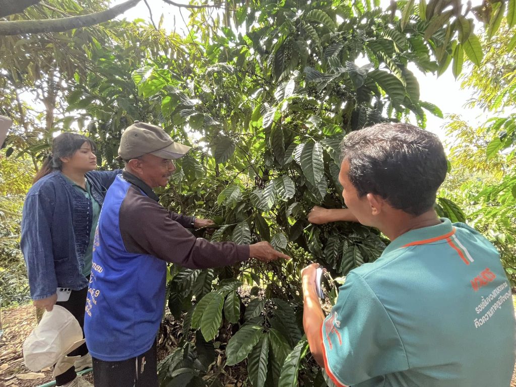 นายวินัย อินทอง ผู้อำนวยการศูนย์ขยายพันธุ์พืชที่ 4 จังหวัดนครศรีธรรมราช มอบหมายนายสราวุธ ชลหาญ นักวิชาการส่งเสริมการเกษตรชำนาญการ และคณะ ลงพื้นที่ถอดองค์ความรู้การขยายพันธุ์กาแฟโรบัสต้าจากเมล็ด ตั้งแต่การคัดเมล็ด การผสมดินปลูก และการดูแลรักษาต้นธุ์กาแฟ ณ แปลงต้นแบบการเรียนรู้การเพิ่มประสิทธิภาพการผลิตกาแฟ ของนายปรีชา รัตนบุรี กาแฟบ้านไร่ตาชา หมู่ 15 ตำบลบางขัน อำเภอบางขัน จังหวัดนครศรีธรรมราช โดยนางจิรา ทองศรีนวล เกษตรอำเภอบางขัน จังหวัดนครศรีธรรมราช ให้การต้อนรับ และนำลงพื้นที่ ภายใต้โครงการผลิตและขยายพืชพันธุ์ดีเพื่อเพิ่มประสิทธิภาพการผลิตและยกระดับความมั่นคงด้านอาหาร กิจกรรมผลิตไม้ผลไม้ยืนต้น