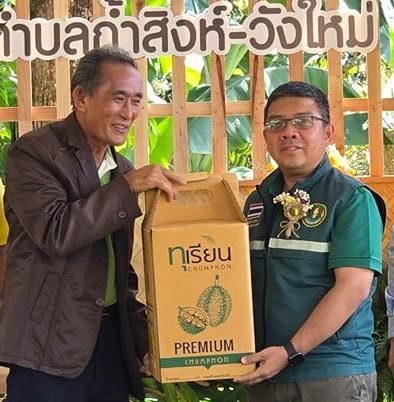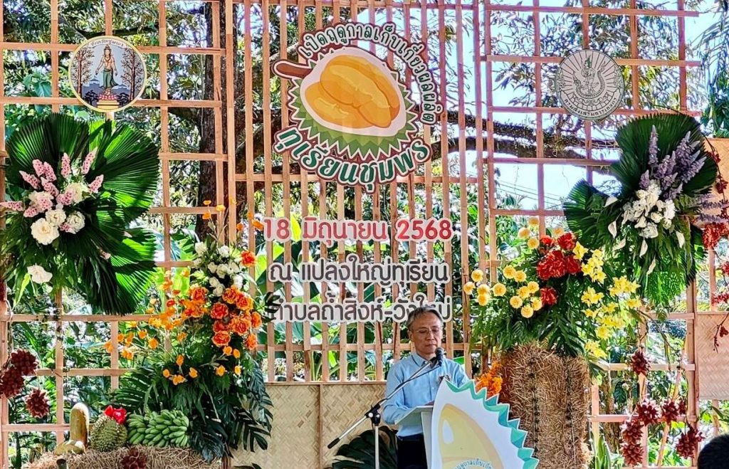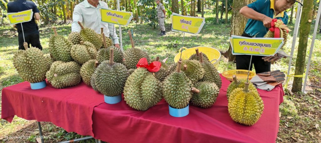 นายวินัย อินทอง ผู้อำนวยการศูนย์ขยายพันธุ์พืชที่ 4 จังหวัดนครศรีธรรมราช เข้าร่วม “งานวันเปิดฤดูการเก็บเกี่ยวผลผลิตทุเรียนชุมพร” ประจำปี 2568 ณ แปลงใหญ่ทุเรียน ตำบลถ้ำสิงห์ หมู่ที่ 1 ตำบลถ้ำสิงห์ อำเภอเมืองชุมพร จังหวัดชุมพร โดยนายเธียรชัย ชูกิตติวิบูลย์ ผู้ว่าราชการจังหวัดชุมพรเป็นประธานเปิดงานฯ นายสุบรรณ์ รักษ์ทอง เกษตรจังหวัดชุมพร กล่าวรายงาน ซึ่งกิจกรรมความสำคัญของการผลิตทุเรียนให้ได้มาตรฐาน การเก็บเกี่ยวทุเรียนคุณภาพ ตลอดจนการพัฒนาทักษะด้านการคัด การตัดทุเรียน เพื่อทำการเก็บเกี่ยวผลผลิตที่มีคุณภาพสร้างความเชื่อมั่นให้ผู้บริโภคต่อไป