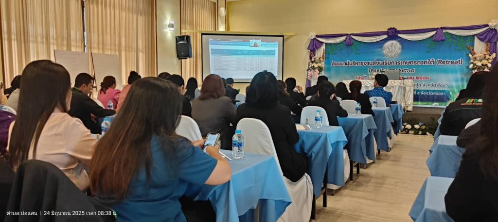 นายวินัย อินทอง ผู้อำนวยการศูนย์ขยายพันธุ์พืชที่ 4 จังหวัดนครศรีธรรมราช พร้อมด้วยนางสาวกาญจนา โสหุรัตน์ นักวิชาการส่งเสริมการเกษตรชำนาญการ เข้าร่วมการสัมมนาผู้บริหารงานส่งเสริมการเกษตรภาคใต้ (Retreat) ปีงบประมาณ 2568 ณ โรงแรมบ่อแสนวิลล่าแอนด์สปา อำเภอทับปุด จังหวัดพังงา การประชุมในครั้งนี้