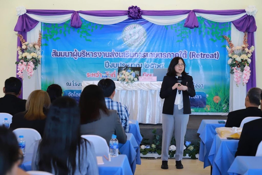 ในการนี้นายครองศักดิ์ สงรักษา รองอธิบดีกรมส่งเสริมการเกษตร เป็นประธานเปิดการสัมมนาผู้บริหารงานส่งเสริมการเกษตรภาคใต้ (Retreat) ปีงบประมาณ 2568 และนายภูวเดช วุฒิวงศ์วัฒ ผู้อำนวยการสำนักงานส่งเสริมและพัฒนาการเกษตรที่ 5 จังหวัดสงขลา กล่าวรายงานและต้อนรับผู้บริหารงานส่งเสริมการเกษตรภาคใต้