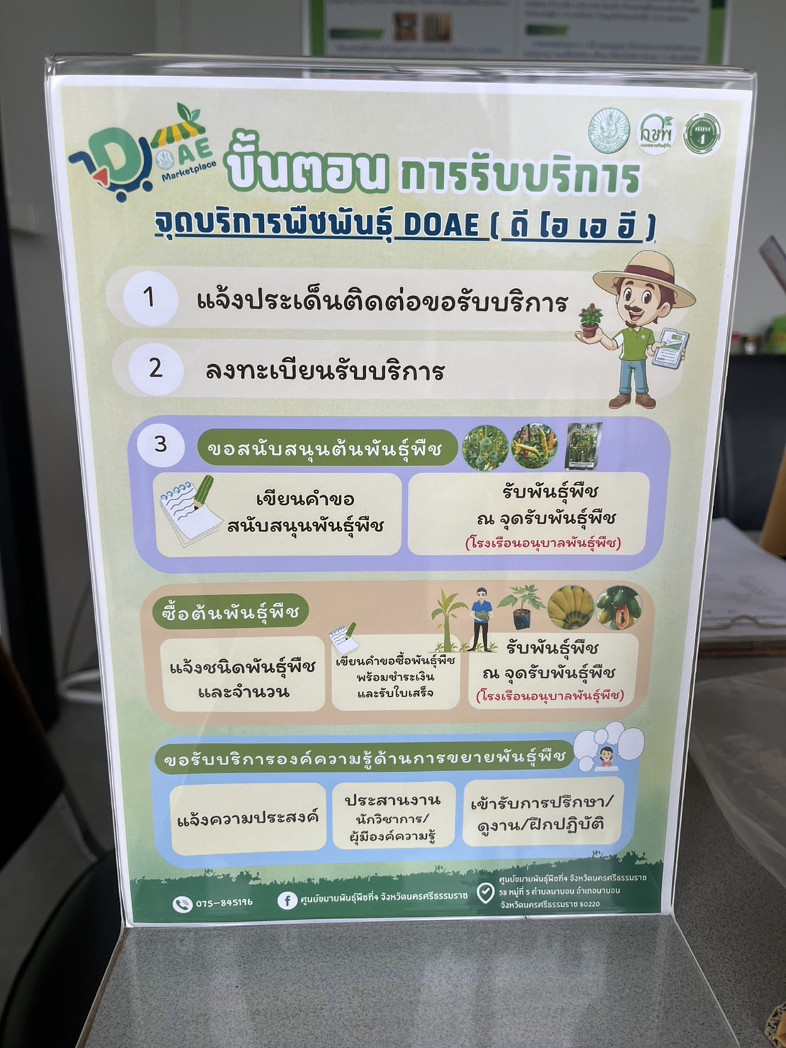 จุดบริการพืชพันธุ์ Doae มีจุดถ่ายทอดความรู้/สนับสนุนพืชพันธุ์ดี/จำหน่ายพืชพันธุ์ดีใน 4 สายการผลิต โดยมีองค์ประกอบ ดังนี้